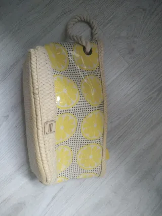 Bolso de mano con un alegre estampado de limones. - Material exterior de rafia. - Detalle de limones sobre fondo de puntos. - Asa de cuerda. - Etiqueta de marca visible.