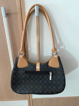 Bolso de mano o de hombro de la marca Cortefiel con un bonito estampado. - Diseño con estampado geométrico. - Ribetes y asas en color marrón.