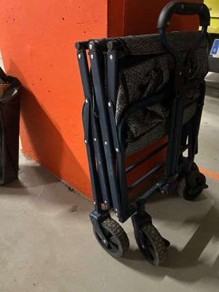 Carro de playa plegable de la marca Zara. Es práctico para transportar tus cosas. - Estructura de metal. - Ruedas resistentes. - Diseño estampado.