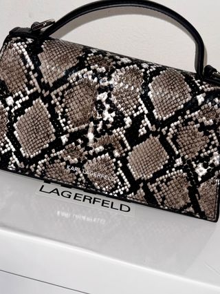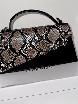 Elegante bolso con un diseño llamativo. - Acabado en piel con estampado de serpiente. - Detalle del logo de Lagerfeld. - Asa superior. - Cierre de solapa.