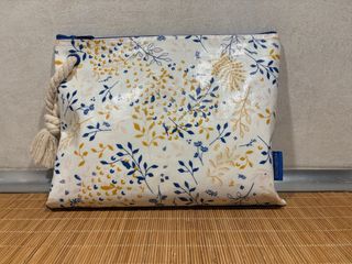Neceser impermeable en color blanco, con un bonito estampado floral en tonos azul marino y mostaza. - Cierre de cremallera. - Detalle de cuerda de algodón trenzada. - Diseño multicolor sobre fondo blanco. - Funcional y de gran capacidad. - Medidas: 29 cm x 24 cm. Bolsa de aseo, cartera, bolso, piscina, viaje, baño, organizador, almacenaje.