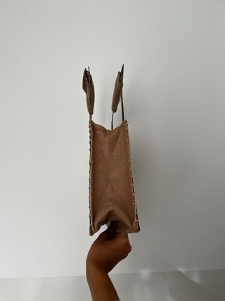 Bolso con un llamativo estampado de serpiente. Su diseño único lo hace destacar. - Asa de madera. - Estampado de serpiente en tonos beige y marrón.