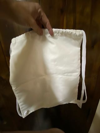 Mochila en perfecto estado con un diseño moderno y práctico, perfecta para llevar tus esenciales. - Cierre de cordón ajustable. - Bolsillo frontal con cremallera. - Estampado Take me anywhere. - Bolsillos interiores - Ajustable