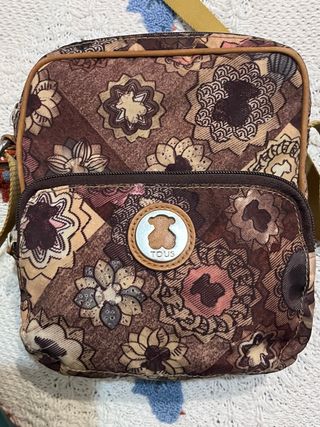 Bolso Tous con un bonito estampado floral en tonos marrones y beige. Ideal para llevar lo esencial. - Cierre de cremallera. - Bolsillo frontal con cremallera. - Detalle de oso Tous en la parte frontal.