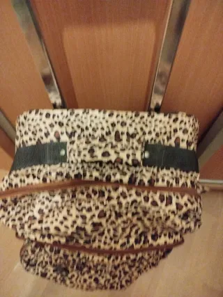 Conjunto de bolso y monedero con un llamativo estampado de leopardo. La cartera por dentro roces de las monedas - Bolso con correa. - Monedero a juego.