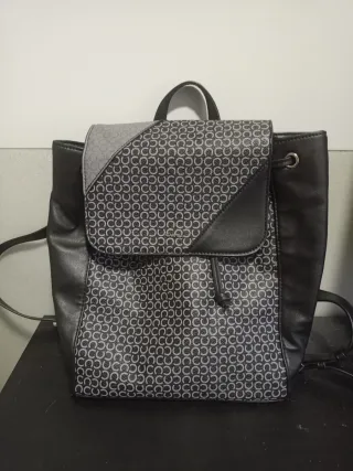 Mochila de la marca Carpisa en tonos negro y gris. Presenta un diseño moderno con estampado. - Cierre de cordón y solapa. - Bolsillo exterior. - Tirantes ajustables.