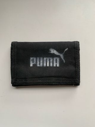 Cartera de la marca Puma en color negro. Diseño clásico y funcional. - Logo de Puma estampado. - Cierre de velcro.