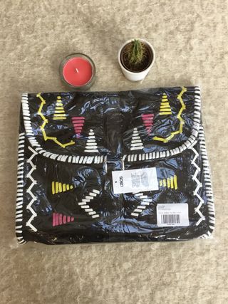Bolso de mano, de ante negro de Asos. Tipo etnico. Sin estrenar. Siempre guardado en bolsa de plástico original. Medidas 34cms ancho y 28cms alto. Muy bonito. El ante muy suave. Se cierra con corchete en parte delantera. Interior de tela. Precioso. Con su embalaje original