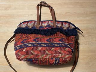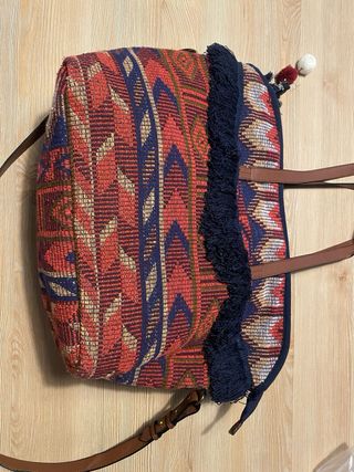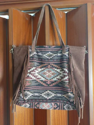 Bolso étnico con flecos y asas