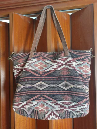 Bolso de mano con un diseño étnico y vibrante. Perfecto para añadir un toque de estilo, 100% algodón. - Tejido con patrón geométrico. - Cierre de cremallera. - Correa de cuero ajustable. - bolsillo interior. - 24cmx 20cm No hago envios, No me desplazo la entrega es en mano en el portal de mi casa, solo si la compra es muy importante bajo acuerdo! En mi perfil tengo varias: botas, botines, zapatos, sandalias tallas entre 36, 37, 38, 39, diferentes marcas( camper, elle, fosco, extradivarius..). Abrigos, chaquetas, jersey, camisas.. marca; pepe jeans, desigual, miss sixty, ... Si te llevas varias cosas de mi perfil podemos negociar!