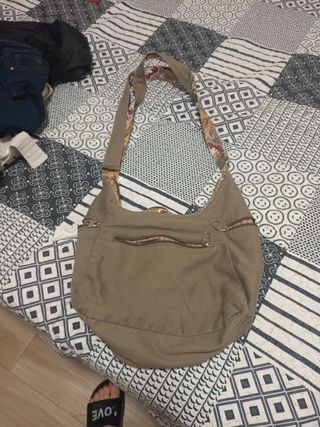 Precioso bolso bandolera. Es de color negro y dorado, con un diseño étnico en la parte superior. - Asa larga ajustable. - Confeccionado en tela resistente. - Ideal para el día a día. - La cremallera está un poco descosida como se ve en la última foto, de hay el precio