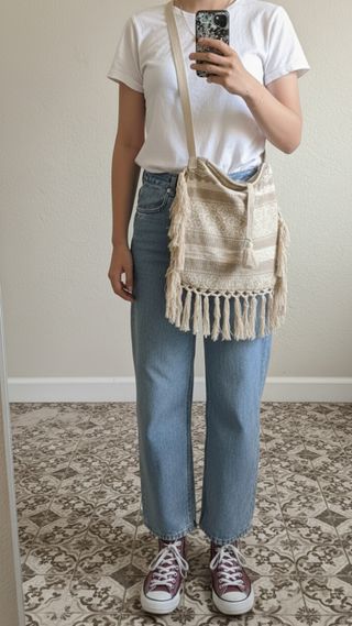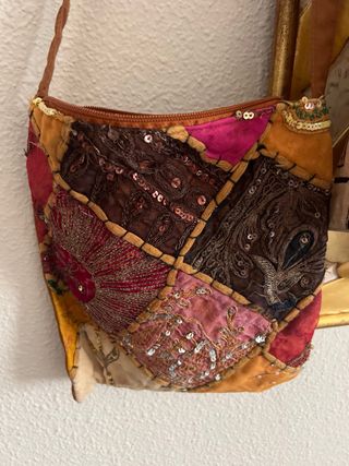 Auténtico bolso bandolera indio de estilo étnico, ideal para darle un toque único a tu look. - Confeccionado con materiales de calidad. - Diseño llamativo con bordados multicolor. - Asa larga ajustable para llevarlo al hombro o cruzado. - Detalle de borla decorativa. HAGO DESCUENTOS POR PACKS!!! Pasa por mi armario a echar un vistazo 👀👀