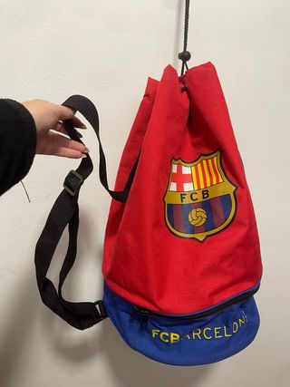 Mochila de entreno con el escudo del FC Barcelona. - Diseño retro. - Combinación de colores rojo y azul. - con dos asas, una para llevar colgada a la espalda, y la otra para llevar de la mano. - es ideal para llevar de un hombro o cruzada - departamento inferior con cremallera para poner los zapatos Tags: bag backpack crossed fcb futbol club barcelona barça catalunya escut blaugrana vintage niño hombre fútbol football femenino balonpié vintage colegio escuela gimnasio gym y2k