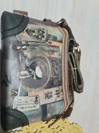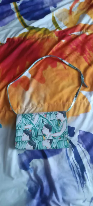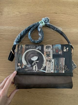 Bolso bandolera de la marca Anekke con un diseño único y artístico. Nuevo y sin estrenar. Con etiquetas. Impecable. - Estampado con una figura femenina y elementos inspirados en la cultura oriental. - Cierre de solapa con imán. - Correa ajustable para llevar al hombro o cruzado.