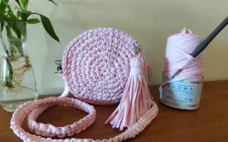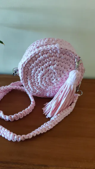 Bolso redondo rosa hecho a mano