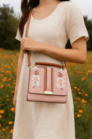 Bolso rosa con bordado floral. Como nuevo