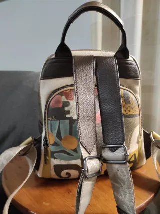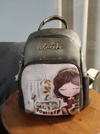 Mochila de la marca Anekke con un diseño único y artístico. Presenta un estampado frontal con una figura femenina y detalles inspirados en la arquitectura clásica.Os e puesto una foto de lo que me costó 68.95€ y la dejo en 45€.Pensar que es de esta temporada de verano . - Cierre principal con cremallera. - Bolsillo frontal con cremallera. - Tirantes ajustables. - Asa superior. - Adorno de un pequeño gato metálico.