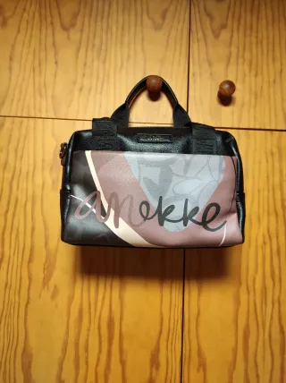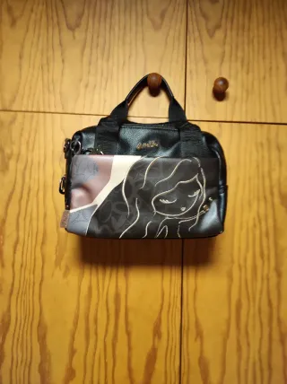 Bolso bandolera de la marca Anekke con un diseño llamativo.Lleva una esquina un pelín tocada.Pir lo demás todo perfecto. - Combinación de negro con detalles multicolor. - Estampado frontal con figura femenina.