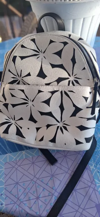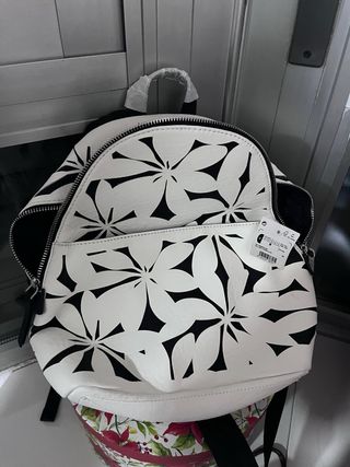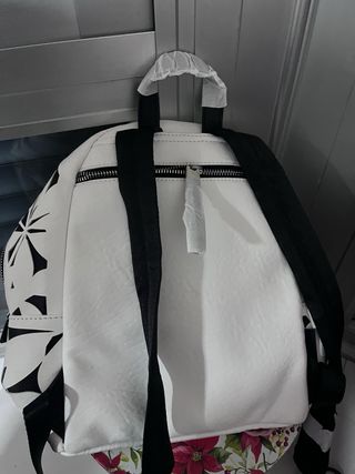 Mochila Desigual flores blanco y negro