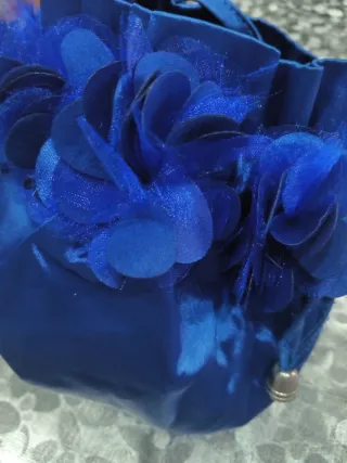 Bolso azul con flores y perlas