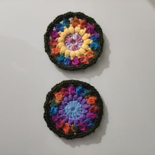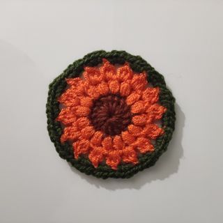 Monedero crochet multicolor con flor amarilla