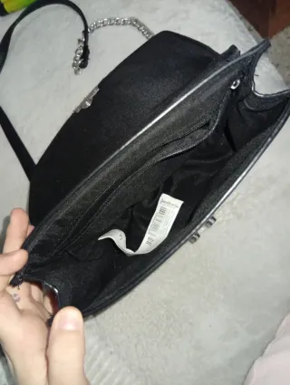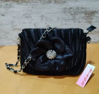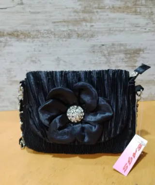 Bolso de mujer negro con flor rosa