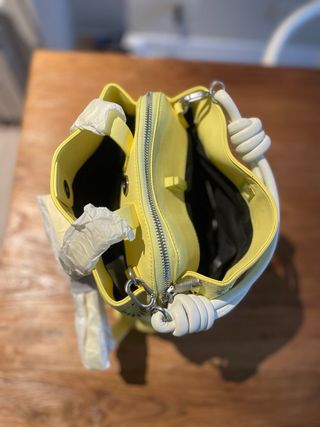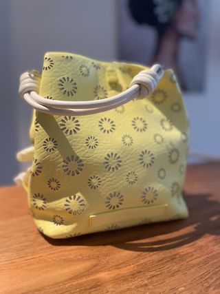 Bolso de tela amarillo con flores