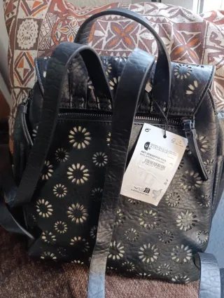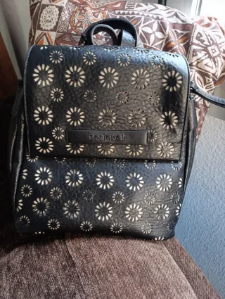 Mochila Desigual negra con flores blancas