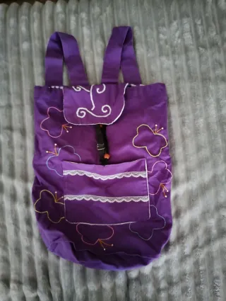 Mochila morada hecha a mano