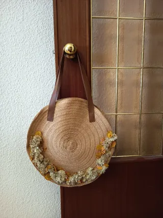 Bolso de paja con flor