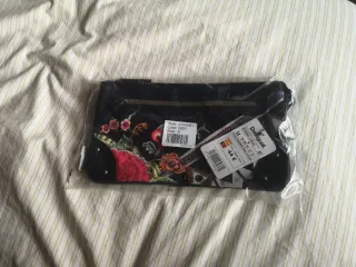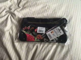 Bolso Desigual original con un estampado floral vibrante. - Diseño en color negro. - Flores en tonos multicolor. - Incluye un neceser a juego.
