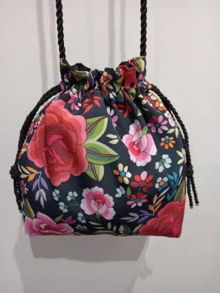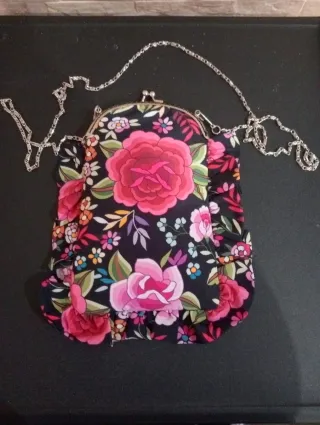 Bolso boquilla flores tela mantón artesana