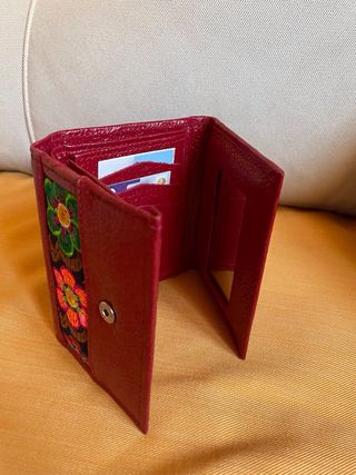 Cartera monedero piel bordada flores