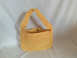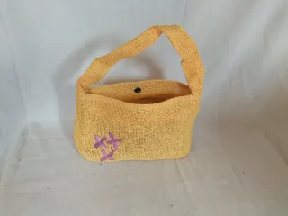 Bolso de ganchillo hecho a mano con un diseño vibrante y alegre. - Tejido a mano con múltiples colores. - Adornado con pequeñas flores de ganchillo. - Asas cómodas para llevar al hombro. - Tamaño 48x35 cm. Asas 60 cm.