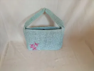 Bolso rafia bambú flores azul nuevo