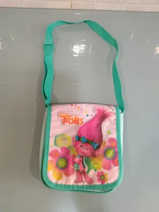 Bolso bandolera con diseño de Trolls, perfecto para los más pequeños. Cuenta con una correa ajustable para mayor comodidad. - Personaje: Poppy de Trolls. - Colores: Rosa y verde. - Diseño con flores y purpurina.