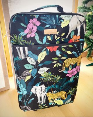 Maleta de cabina con un vibrante estampado selvático. - Diseño con animales exóticos y flores tropicales. - Asa superior para un fácil transporte. - Cremallera para el compartimento principal. 60x35x20cm
