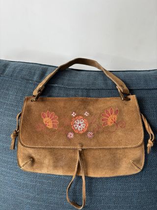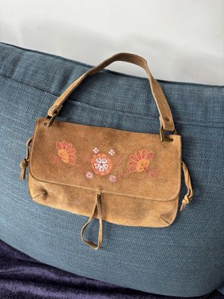 Bolso Ante Marrón Flores Bordadas