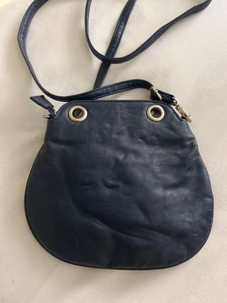 Bolso polipiel azul marino con flor en piel