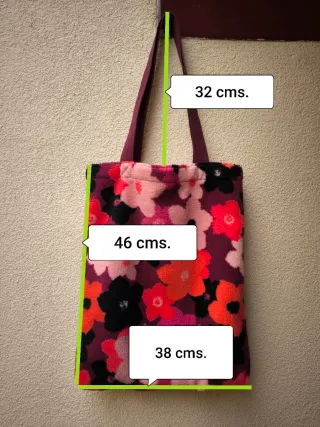 Bolso de tela con un bonito estampado floral, tela fuerte tipo tapicería, con asas, muy práctica, también osra niña. - Diseño con flores y hojas. - Asas para llevar cómodamente.