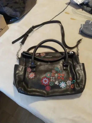 Bolso de mano y bandolera de la marca Desigual. - Diseño con bordados de flores. - Asa de mano y correa ajustable. - Bolsillos exteriores.