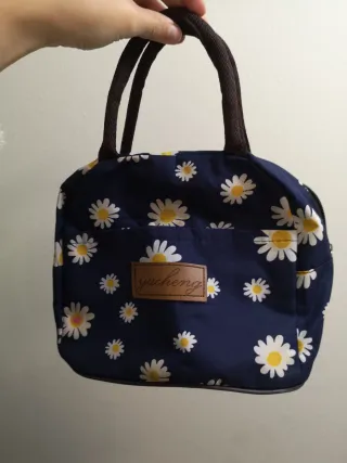 Bolso floral con texto
