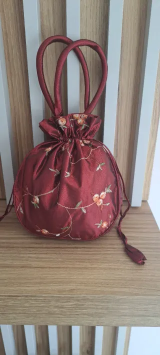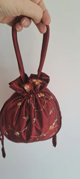 Bolso Limosnera Bordado Flores color burdeos