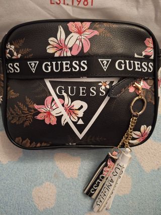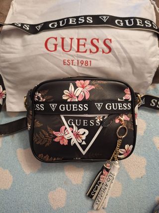 Bolso Guess con un bonito estampado floral. - Diseño con flores en tonos rosas y blancos. - Correa ajustable con logo. - Incluye llavero decorativo.