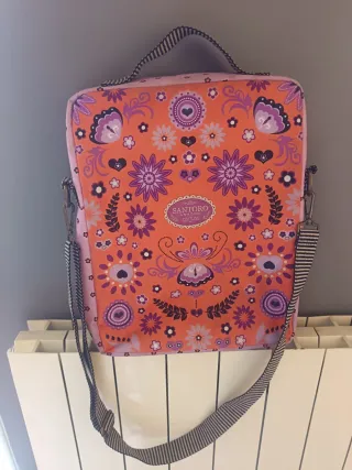 Precioso bolso bandolera de la marca Santoro Gorjuss. Es de color rosa y morado, con un diseño precioso. - Ideal para llevar tus cosas diarias. - Asa larga regulable para llevarlo al hombro o cruzado. - Cierre de cremallera para mayor seguridad. - Perfecto estado.
