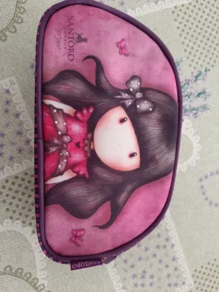 Precioso neceser de la marca Santoro Gorjuss. Está en muy buen estado, apenas se ha usado. - Diseño con la ilustración de la niña Gorjuss y un gatito. - Asa de mano. - Cremallera. - Perfecto para guardar cosméticos o artículos de aseo.