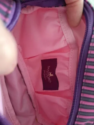 Precioso bolso de la marca Santoro Gorjuss, ideal para niñas. Es de color morado y blanco, con un diseño encantador. No tiene ningun defecto y está como nuevo - Perfecto estado. - Asa de mano. - Cierre de cremallera.