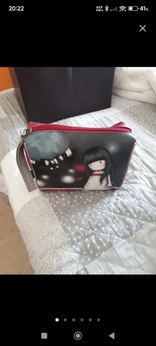 Neceser con un bonito diseño de Santoro. - Cierre de cremallera. - Asa lateral para facilitar su transporte. - Estampado de la muñeca Gorjuss. Medidas Ancho 23 Altura 20