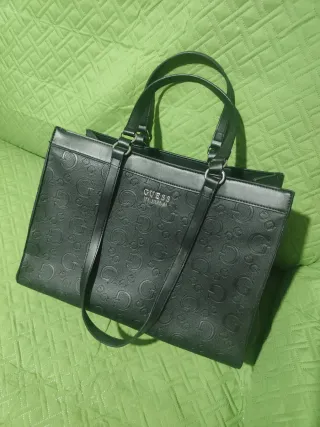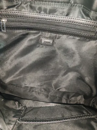Precioso bolso de mano Guess en color negro. Está en muy buen estado y es ideal para el día a día. - Asa de mano y asa bandolera. - Diseño elegante con el logo de Guess grabado. - Compartimento principal con cierre de cremallera y bolsillo interior.