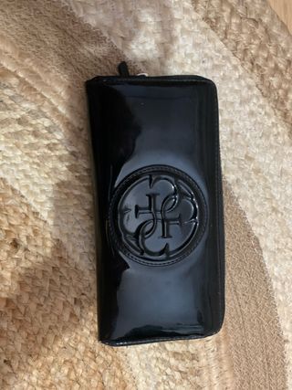 Elegante cartera Guess de charol. - Diseño brillante y moderno. - Logo de Guess en relieve en la parte frontal.